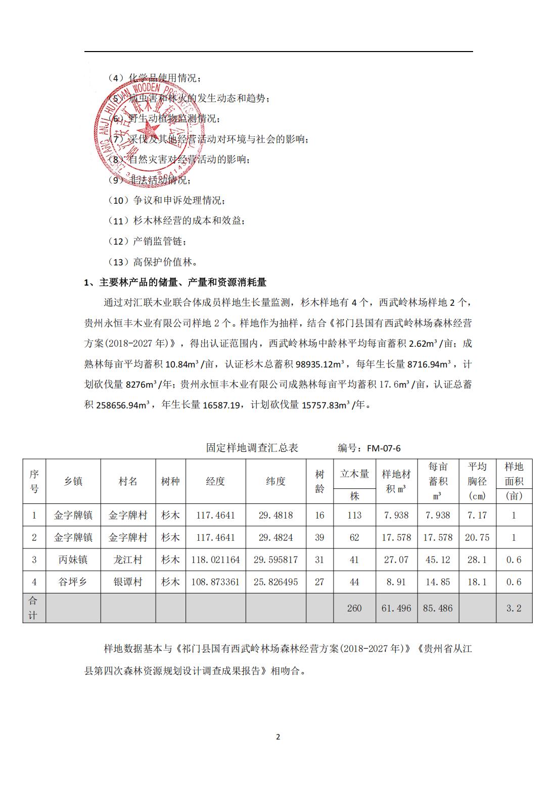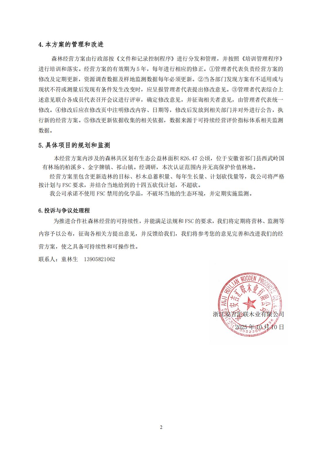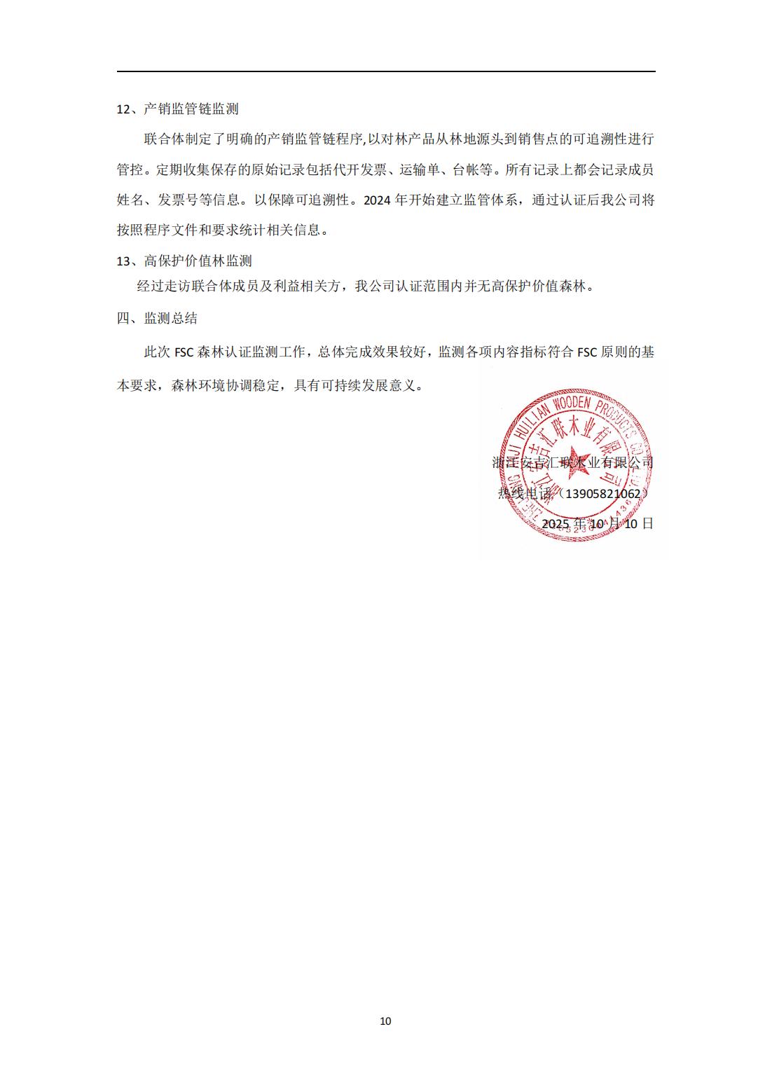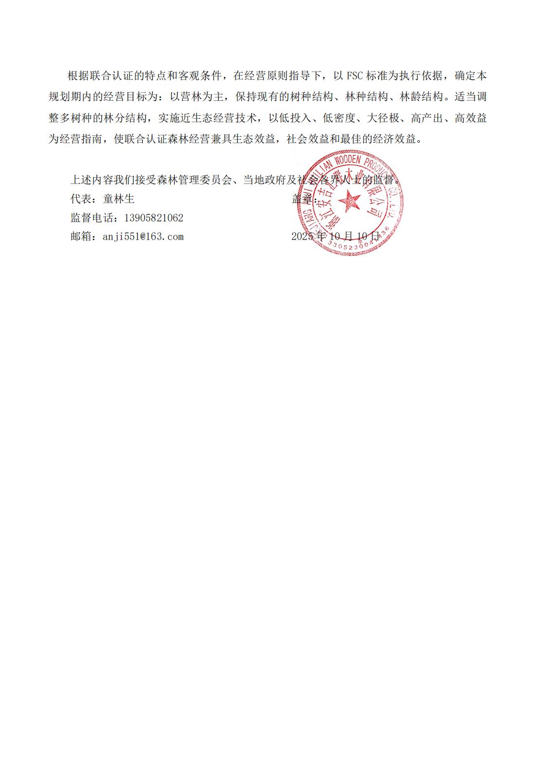 浙江安吉汇联木业有限公司拟通过FM森林认证进一步提高认证范围内的森林经营水平,提升森林的生态地位,实现森林的可持续经营,并旨在稳定和开拓国际市场、促进生态、经济和社会的可持续发展,现将本年度监测总结、认证范围、经营目标等内容公开,特此公示!